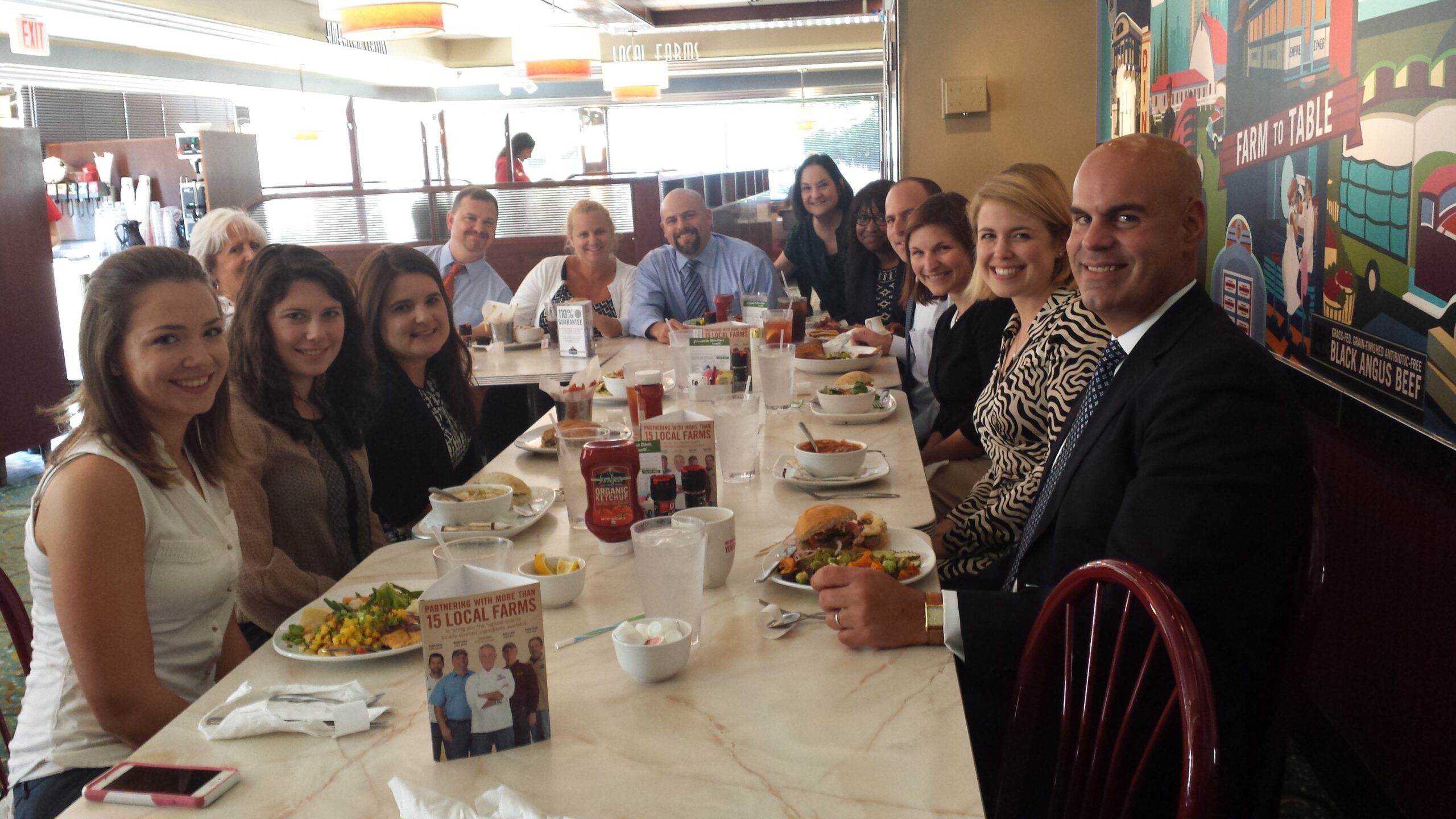 In August, Joanne Randa won the WTOP Free Lunch Friday for our entire office. Cooper Ginsberg Gray and Ms. Randa were announced on Friday, August 14, 2015 as recipients of the WTOP Free Lunch Friday. Because of summer vacations and other scheduling issues, we finally scheduled our Free Lunch at the Fair Lakes Silver Diner on Thursday, September 17, 2015. Most of our office was able to attend and was treated to lunch from the Silver Diner’s extensive menu. Some people even had breakfast for lunch. We thank Joe Howell of The Silver Diner and WTOP for our Free Lunch Thursday!