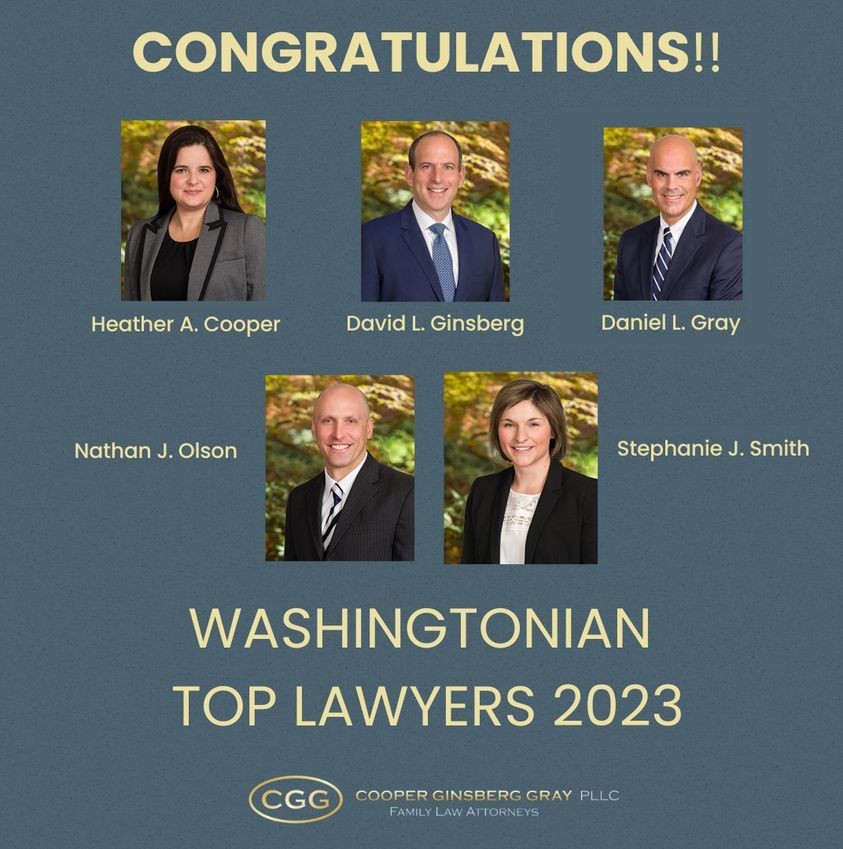 CGG is proud to announce that 5 of our lawyers have been named to Washingtonian Magazine’s 2023 List of Top Divorce Lawyers! Congratulations to Heather, David, Dan, Nathan and Stephanie! Inclusion on the list, which is voted on by area lawyers and includes talented colleagues from the DC Metropolitan area, is quite an honor!
